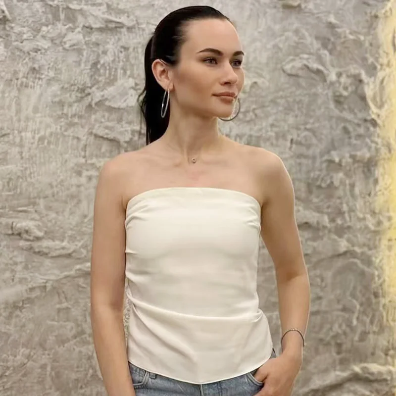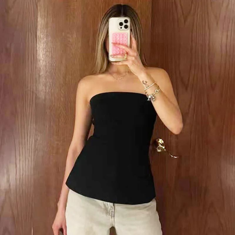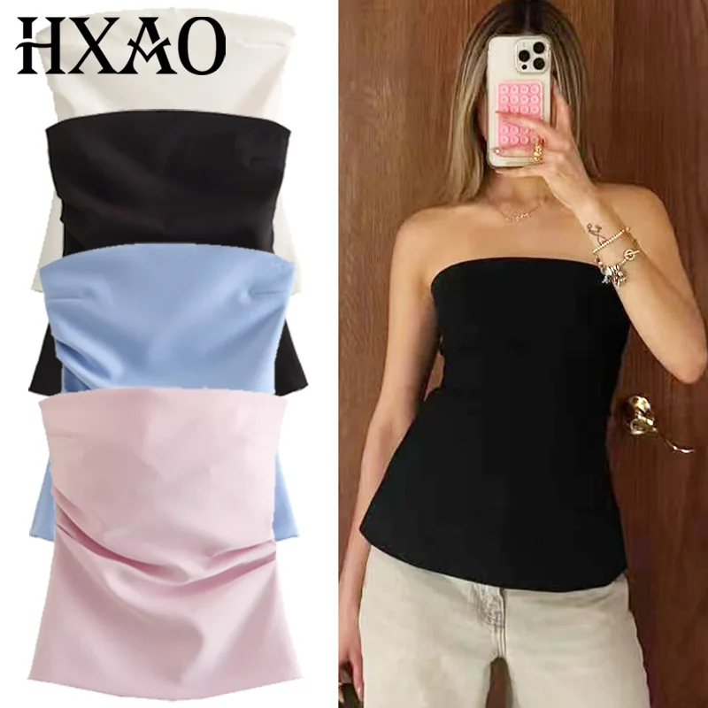 HXAO Corset Tube Top Women Summer 2025 Fashion Tanks & Camis Pink Blue White Black Vest Strapless Ruffled Backless Slim Tank Top